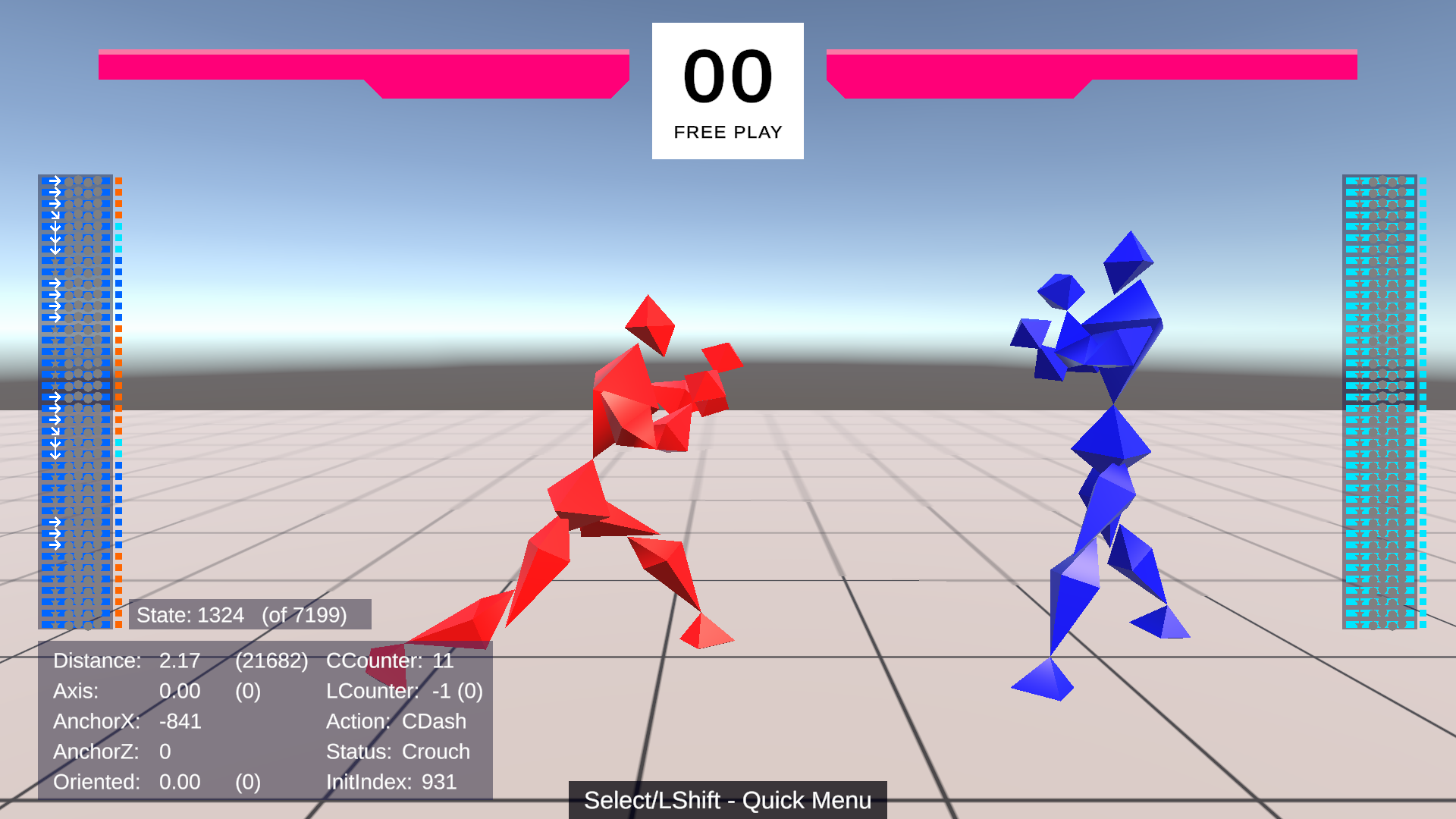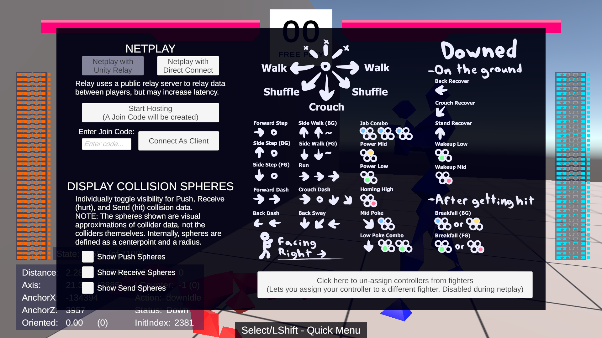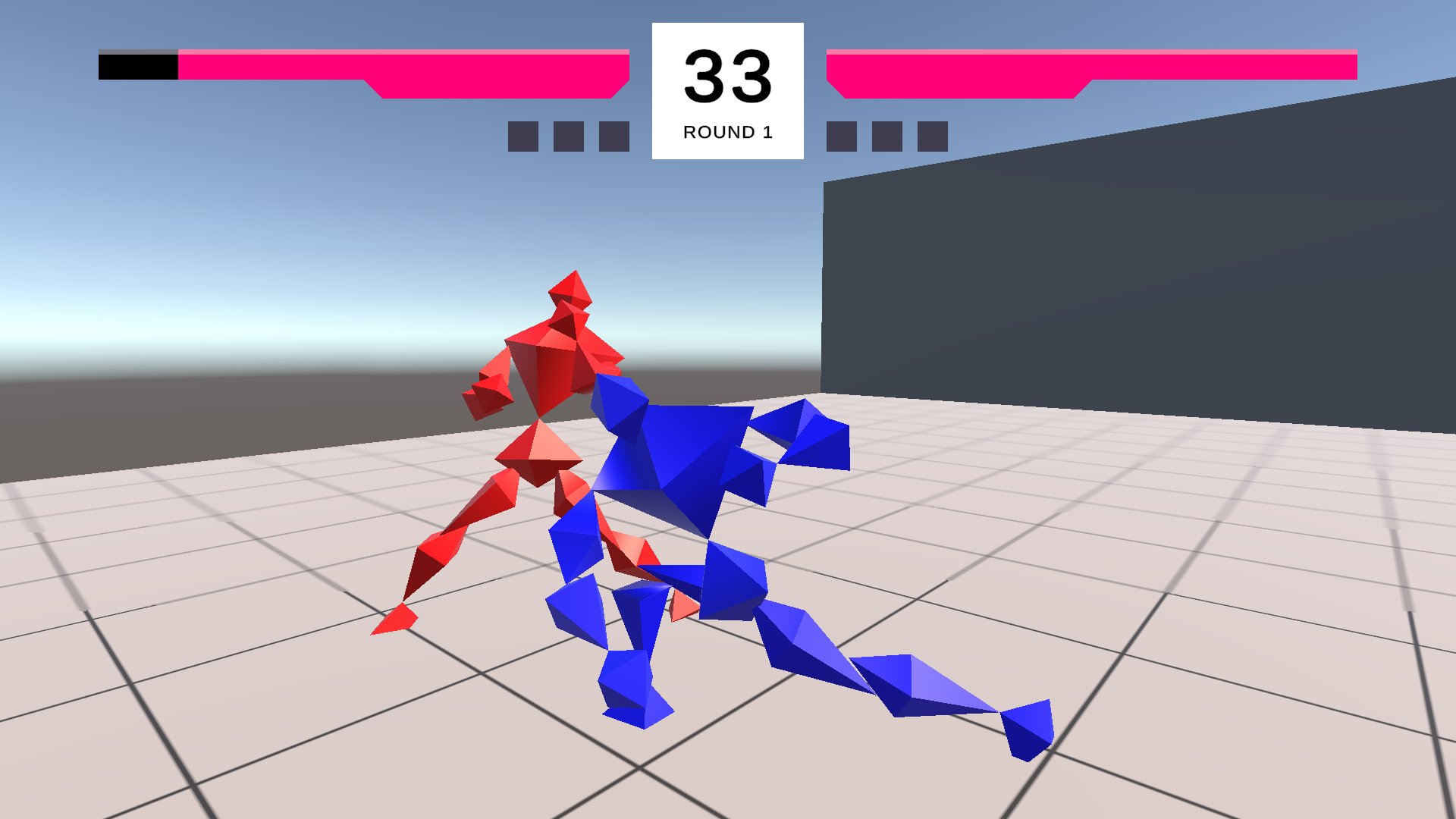Playable online 1v1 through the Unity Relay service, or with direct connect. Currently features Free Play (practice) and Best-Of-5 game modes. There's no character select; the generic fighters share a basic prototype kit of several key attacks, and a lovingly crafted spread of movement abilities, which should feel familiar to fans of Tekken. The command system has been carefully designed to be familiar to experienced Tekken players, as well, with a few looser restrictions. You'll enjoy much slicker and more effective movement than you may be used to.